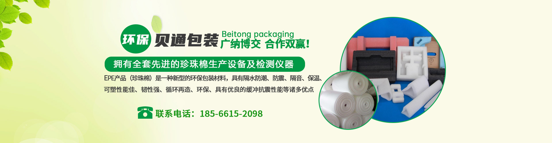 東莞市貝通包裝有限公司位于東莞市常平鎮,交通便利。是一家集設計、生產、銷售、服務于一體的實體企業,主要生產有:EPE珍珠棉,珍珠棉片材,貼合珍珠棉,珍珠棉異型材,成型珍珠棉等包裝產品。EPE產品(珍珠棉)是一種新型的環保包裝材料,具有隔水防潮、防震、隔音、保溫、可塑性能佳、韌性強、循環再造、環保、具有優良的緩沖抗震性能等諸多優點,亦具有很好的抗化學性能。是傳統包裝材料的理想代替品。公司生產的產品符合ROHS要求,廣泛應用于汽車、電子、玩具、五金、手袋、家具、電鍍、LED燈飾、玻璃制品、陶瓷、工藝品、醫療器材、凈水器、多媒體、家電、通訊設備等行業的各種形狀產品的包裝公司現有自己的設計團隊、品質部、銷售團隊、運輸團隊、生產管理團隊,擁有全套先進的珍珠棉生產設備及檢測儀器,配合科學的管理,為產品質量提供強有力的保證,公司始終秉承“顧客至上,品質優良,信譽為本”的經營宗旨!竭誠為廣大客戶朋友們服務!